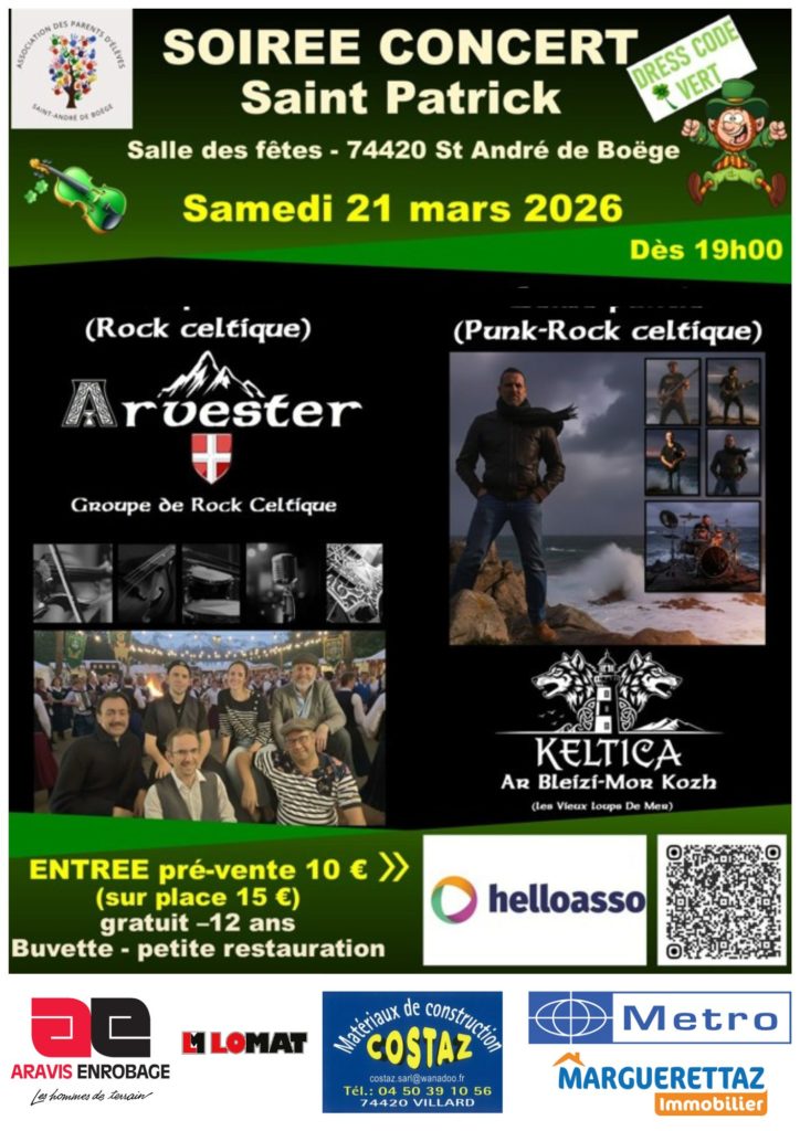 Préparez-vous pour un concert épique qui vous plongera dans l’univers des traditions celtiques, revisitées avec une intensité rock inoubliable, avec ces deux groupes basés dans la Vallée de l’Arve, Arvester Rock Celtique et Keltica Punk Rock Celtique